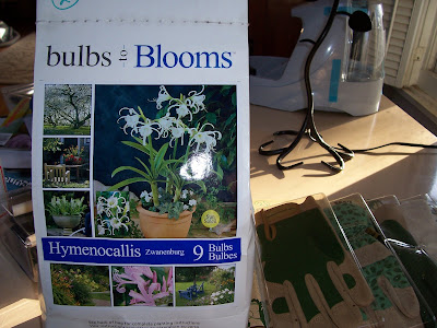 Even with all the distractions, I actually won a game!! I was so excited, and just look at what I won…a package of five different kinds of garden gloves and a bag of spring bulbs! Woo Hoo!!